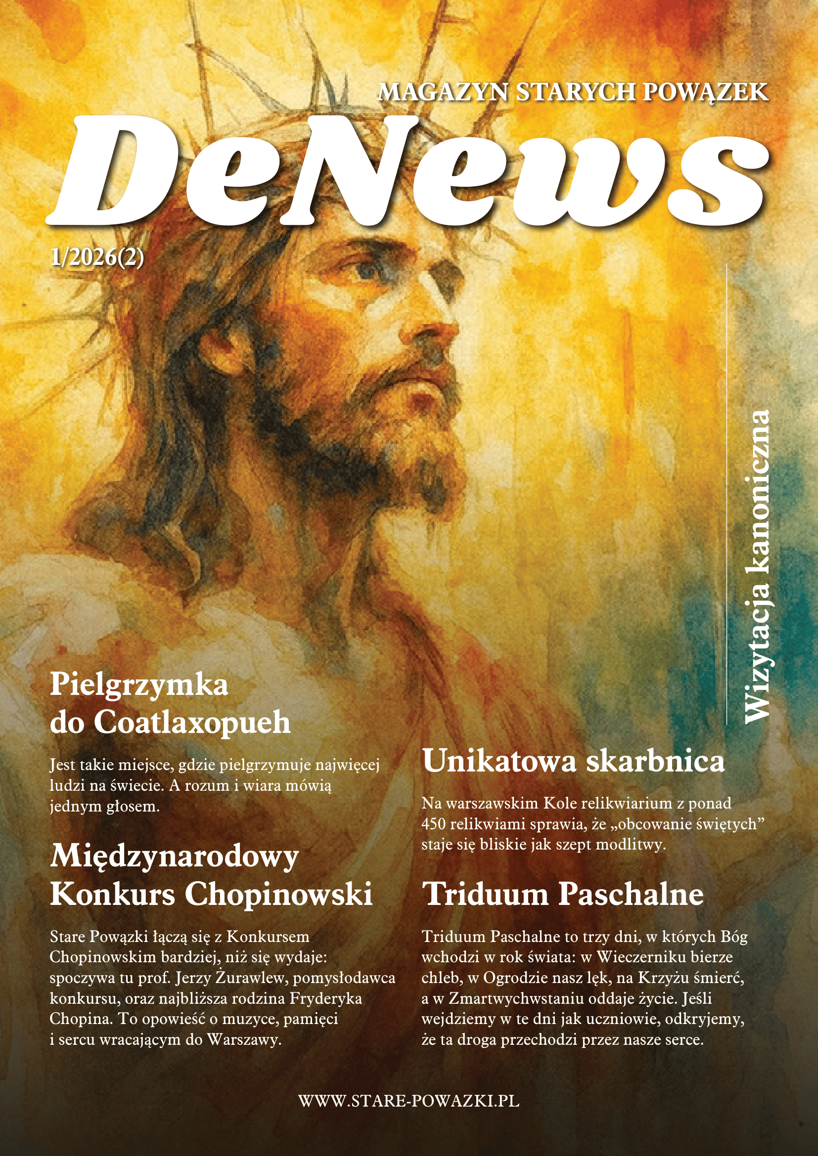 Nazwa nie jest ozdobą. „De” od Deus – Bóg. „News” – wiadomość. Nie obiecujemy „łatwych odpowiedzi”, ale wierzymy, że jest Dobra Wiadomość, która potrafi przenikać codzienność: pracę, relacje, sztukę, pamięć, troskę o wspólnotę. W DeNews będziemy więc szukać światła nie poza światem, lecz w samym środku świata – tam, gdzie człowiek naprawdę żyje.